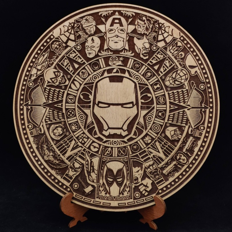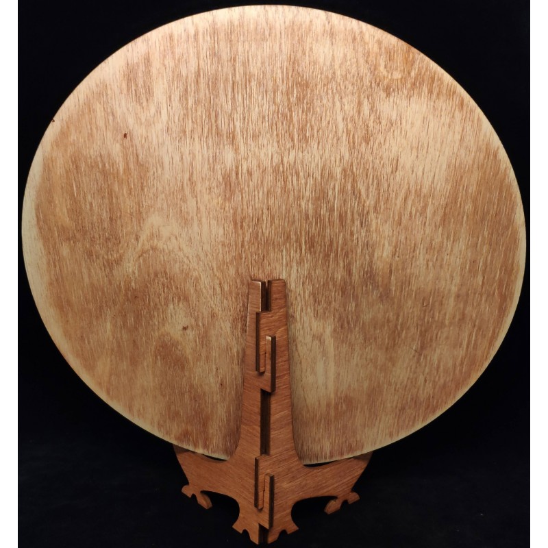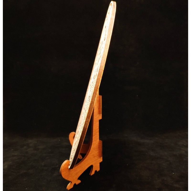 Гравюра имеет круглую форму диаметром 26 см. В комплекте с гравюрой идет подставка. По желанию гравюру можно повесить на стену, для этого есть специальное отверстие.