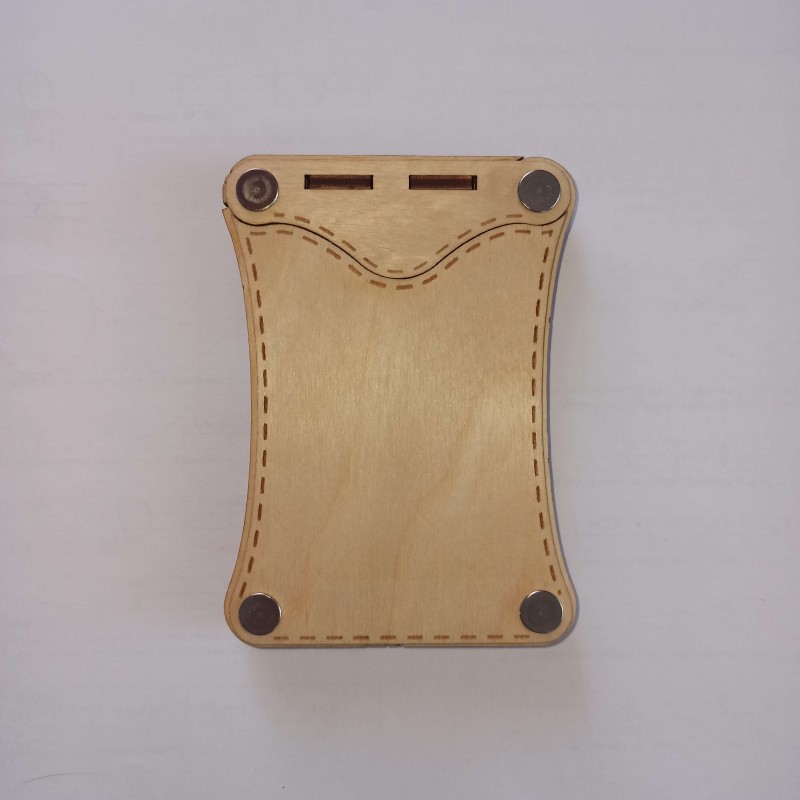 Кейс поставляется в собранном виде в комплекте с деревянной визиткой, изготовленной из фанеры 3 мм.